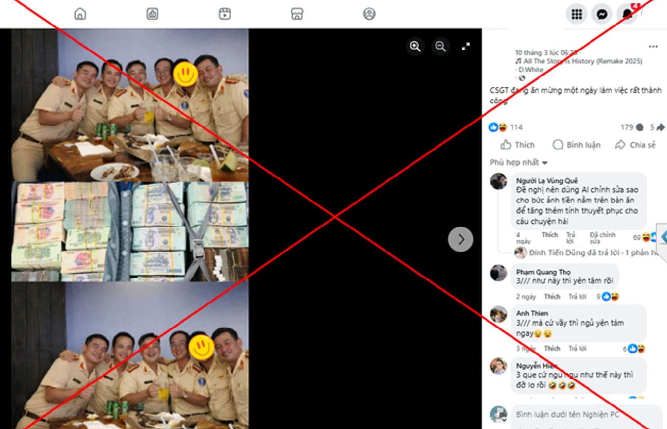 Theo Công an phường Vĩnh Phúc (Phú Thọ), những nội dung này thực chất đã bị dàn dựng và chỉnh sửa, không phản ánh đúng sự thật. Các bài đăng sử dụng hình ảnh một nhóm người mặc trang phục giống CSGT ngồi tại bàn ăn, sau đó ghép thêm các chi tiết liên quan đến tiền bạc nhằm tạo liên tưởng tiêu cực.