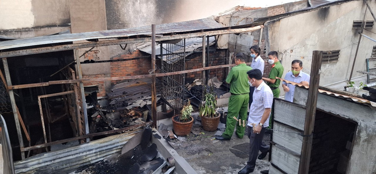 Công an cho biết, căn nhà xảy ra vụ cháy có diện tích khoảng 34,5m2 (ngang 2,3m x dài 15m), kết cấu bê tông, mái tôn, gồm: 1 trệt, 1 gác; mặt trước nhà có 2 cửa (cửa chính tại tầng trệt, cửa ra vào ban công tại tầng gác). Hai bên và phía sau căn nhà bị cháy giáp với nhà dân, phía trước cửa chính là hẻm rộng khoảng 1,2m.