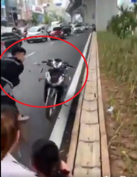 Chiều 24/9, mạng xã hội facebook lan truyền đoạn clip ghi lại cảnh nhóm nam thanh niên khoảng 3-4 người đi trên 2 xe máy lưu thông trên đường Trường Chinh (phường Khương Mai, quận Thanh Xuân, Hà Nội) đã xảy ra va chạm với người phụ nữ đi xe máy.