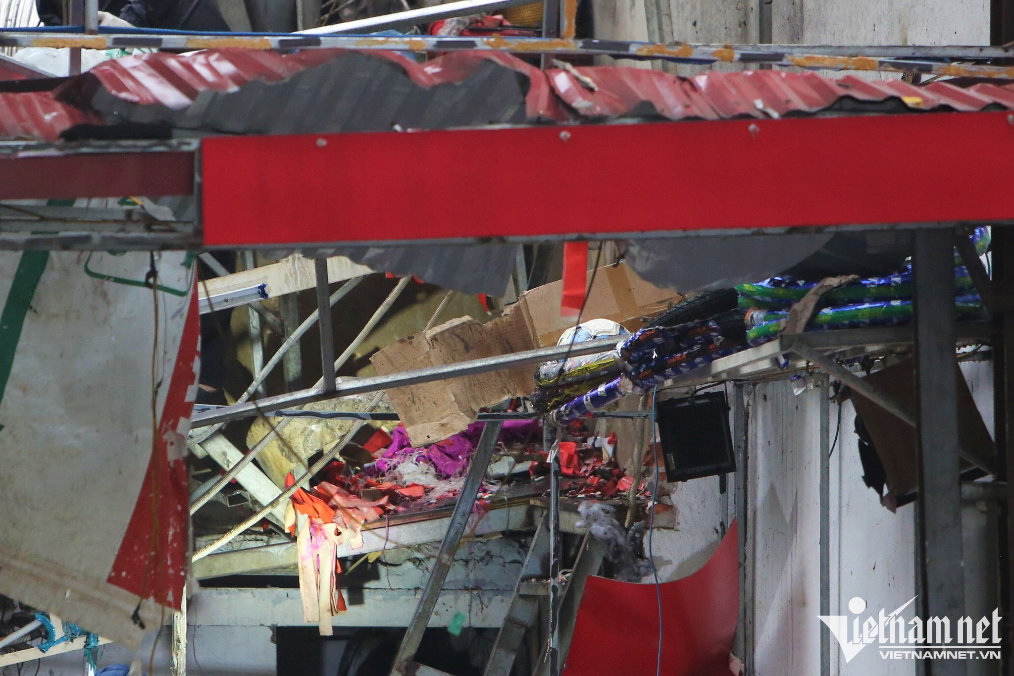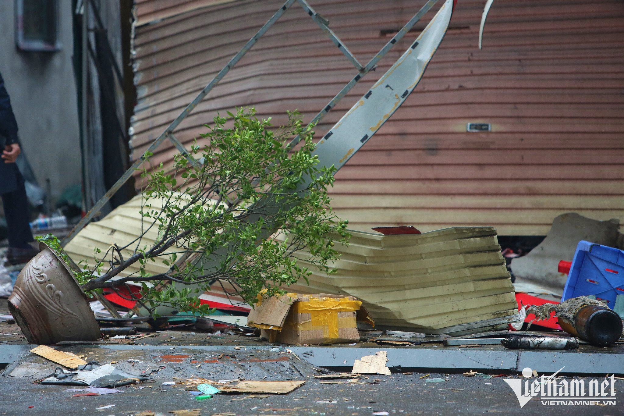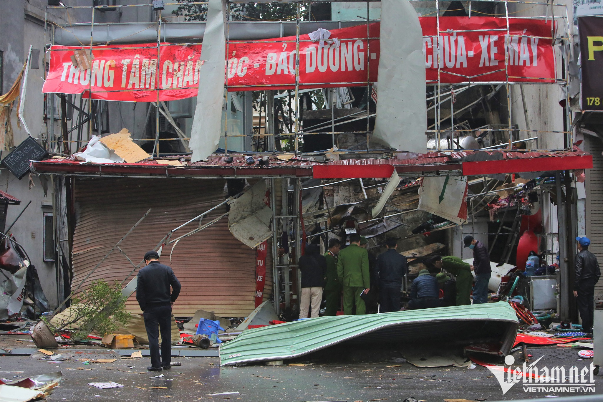 Đến sáng 28/12, lực lượng công an tiếp tục phong tỏa một góc đường nơi xảy ra vụ cháy để khám nghiệm hiện trường. Trong quá trình khám nghiệm, lực lượng chức năng thu được một số giấy màu đỏ có hình dạng giống pháo.