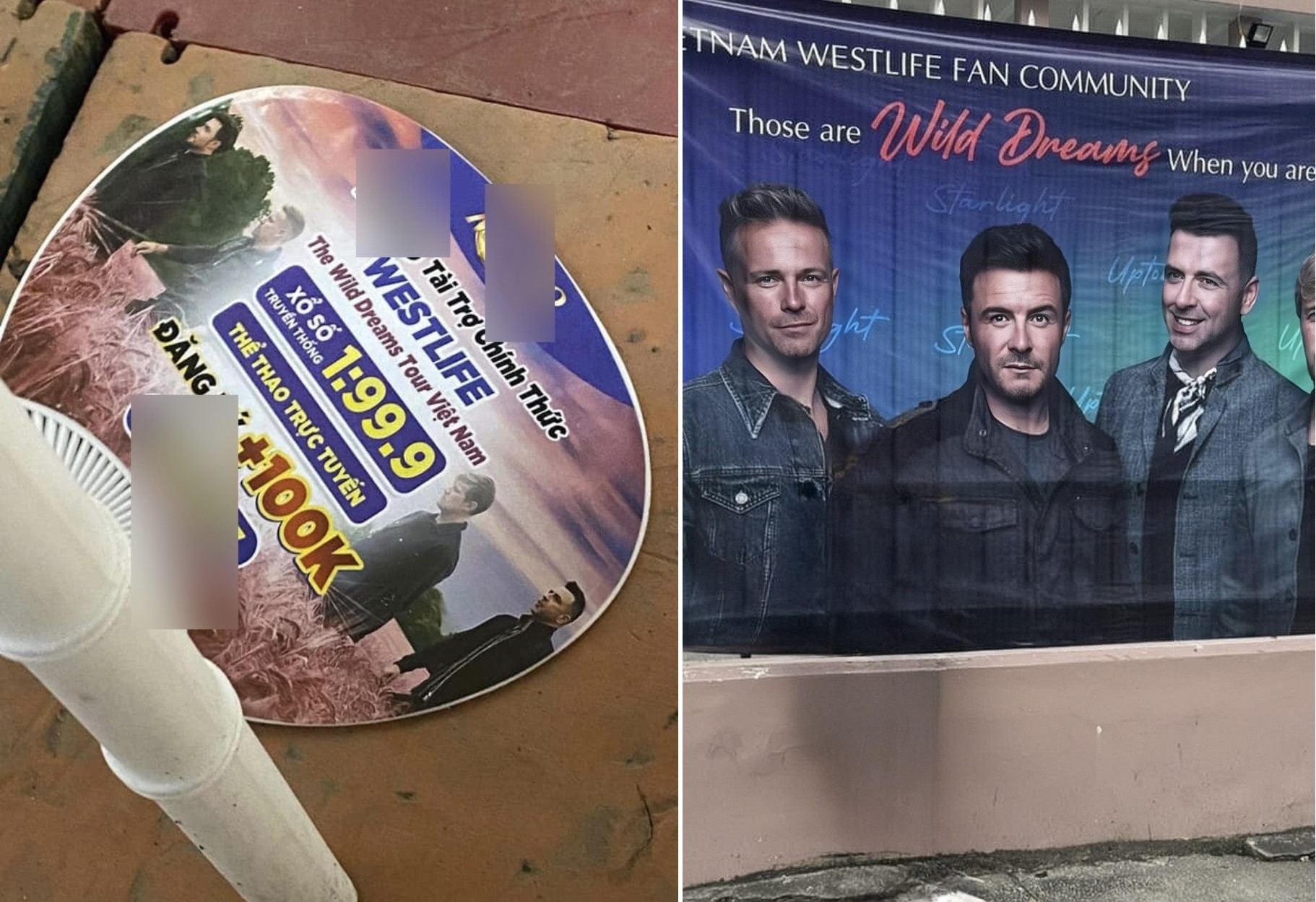 Sau hai đêm diễn của Westlife tại Việt Nam (21-22/11), người hâm mộ của nhóm nhạc bức xúc ban tổ chức lợi dụng thần tượng quảng cáo tiền ảo, công khai phát quạt in thông tin quảng cáo trang web cá độ trong sân vận động Thống Nhất.