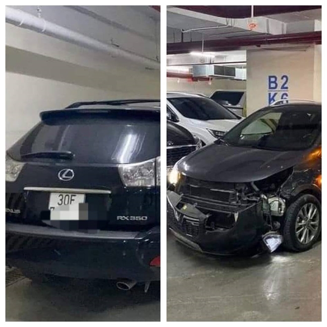 Sau khi cọ xát, húc tung đầu xe Vinfast, Lexus 350 lách được ra, bỏ chạy về hầm B4 chung cư CT4 Mỹ Đình và bỏ xe tại đây đi lên nhà. Tài xế xe Vinfast bám theo xe Lexus đến hầm nhà rồi đi báo công an.
