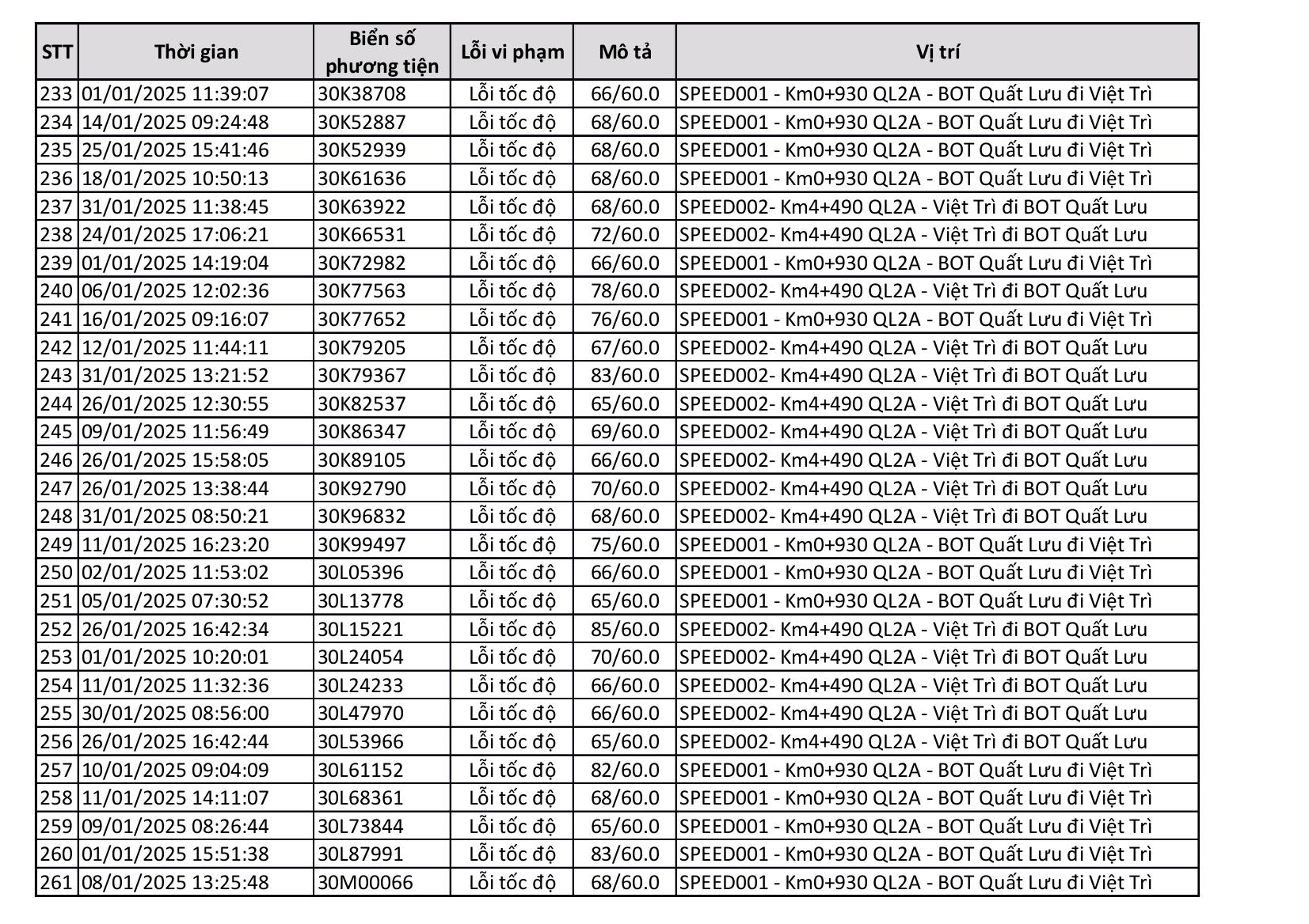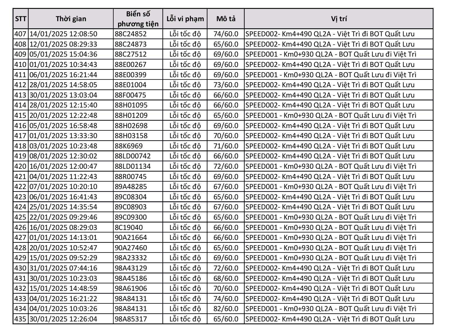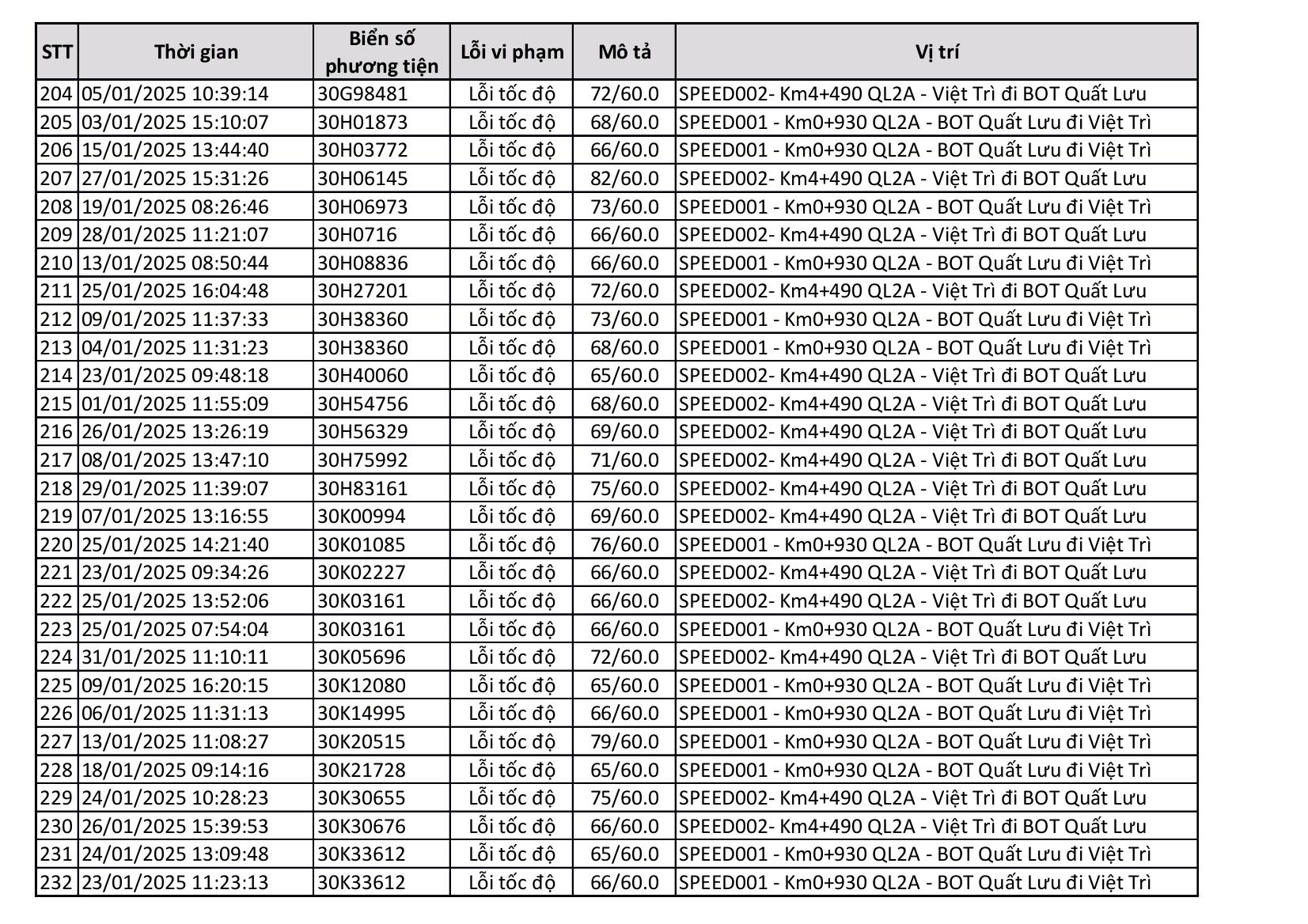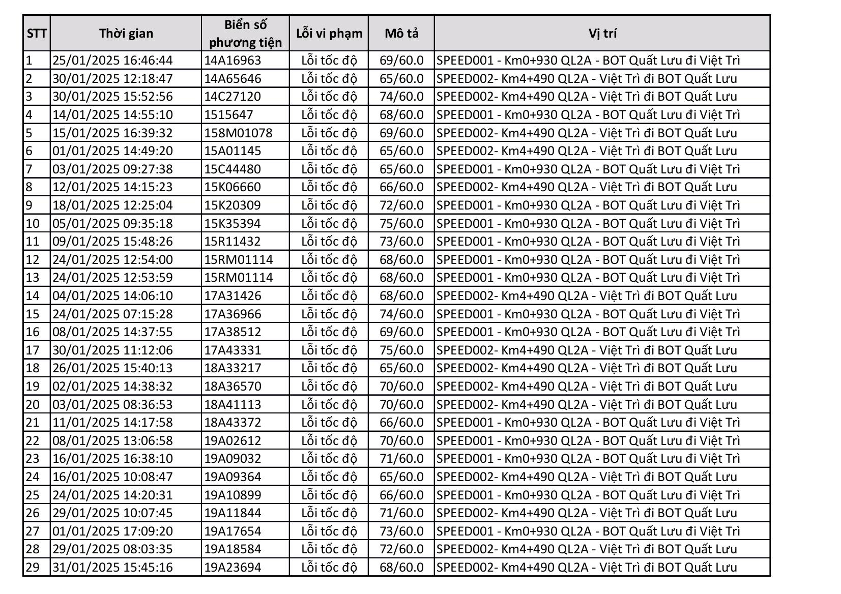 Cụ thể, trong tháng 1/2025, qua Hệ thống camera giám sát giao thông, Phòng Cảnh sát giao thông Công an tỉnh Vĩnh Phúc đã phát hiện và xử phạt “nguội” đối với 440 trường hợp vi phạm Luật an toàn giao thông (Lỗi tốc độ).