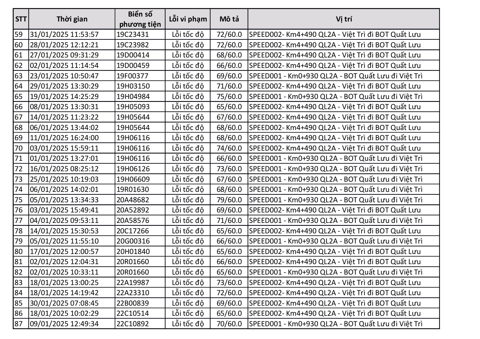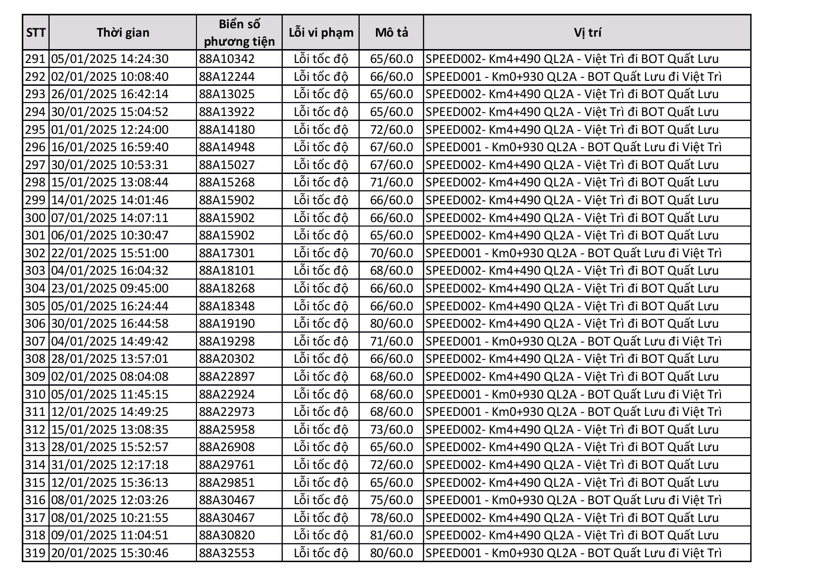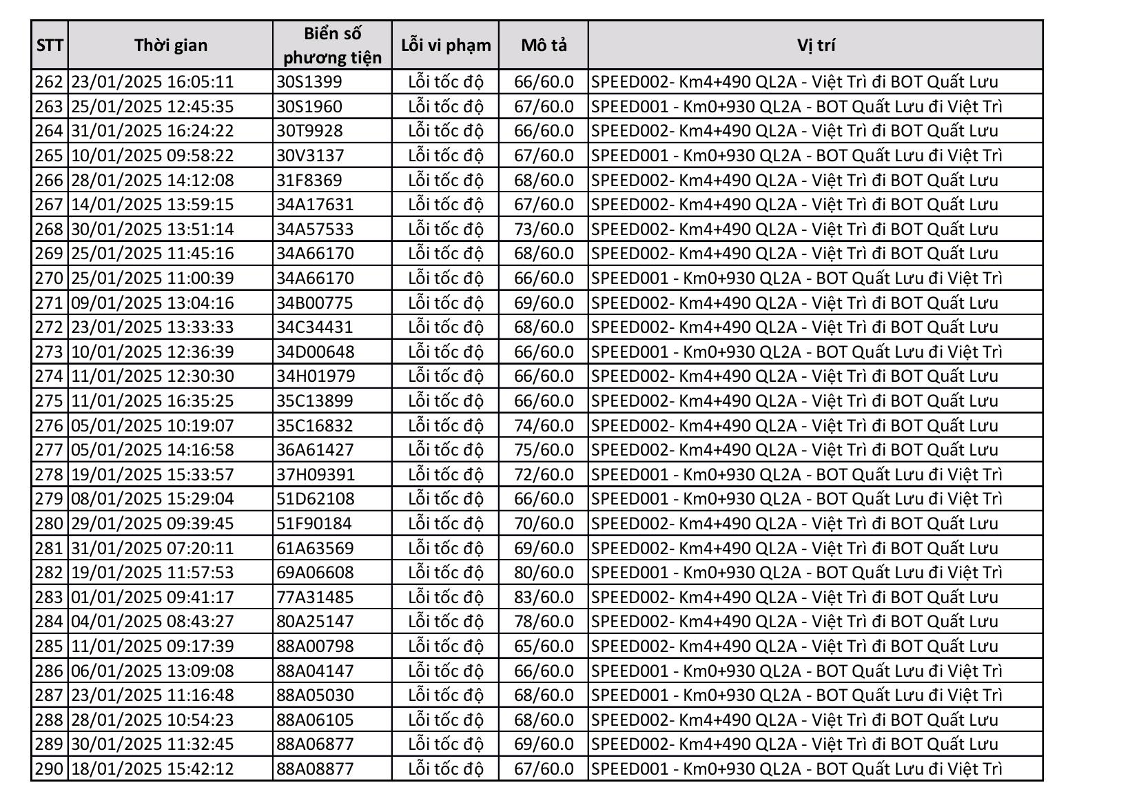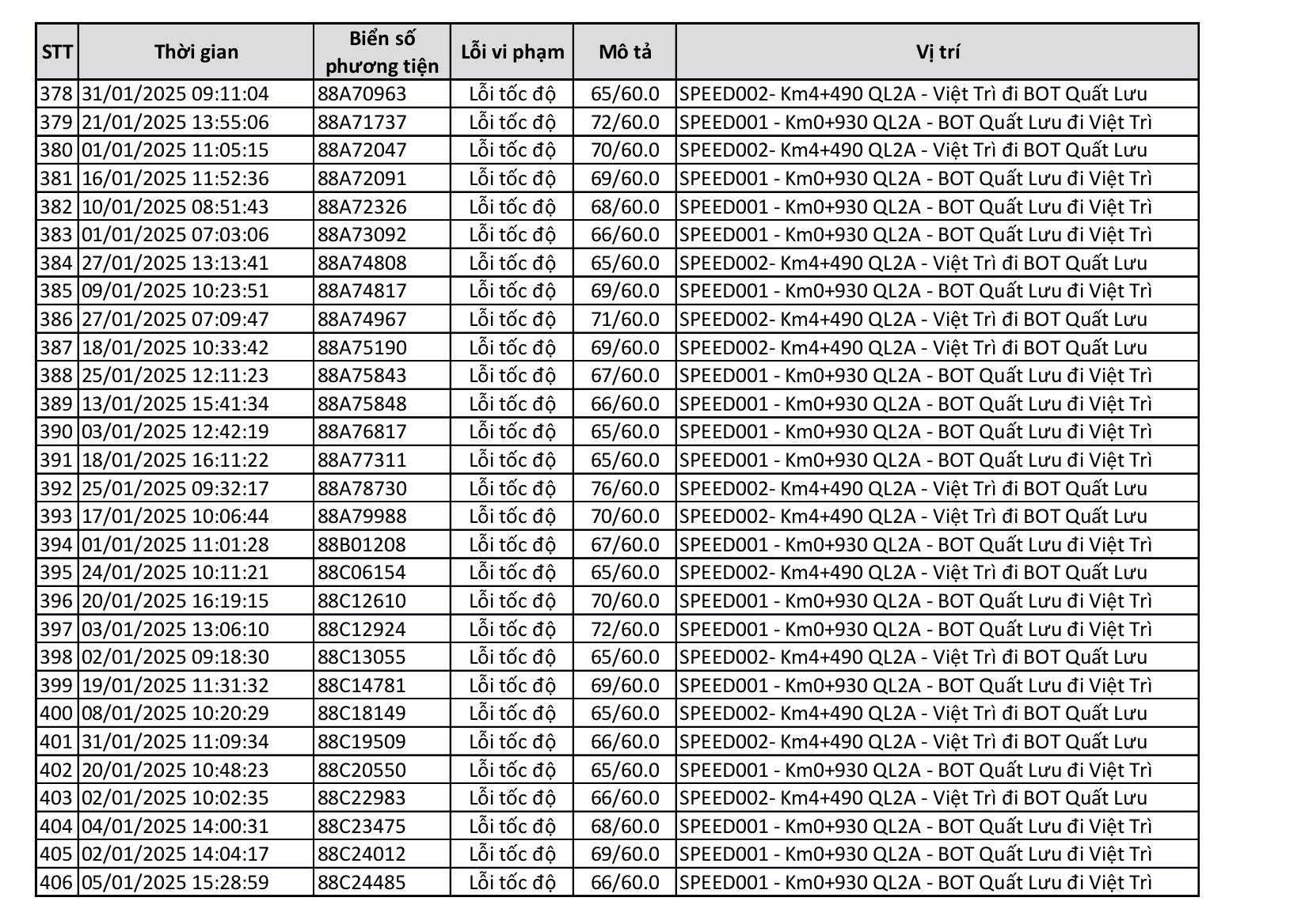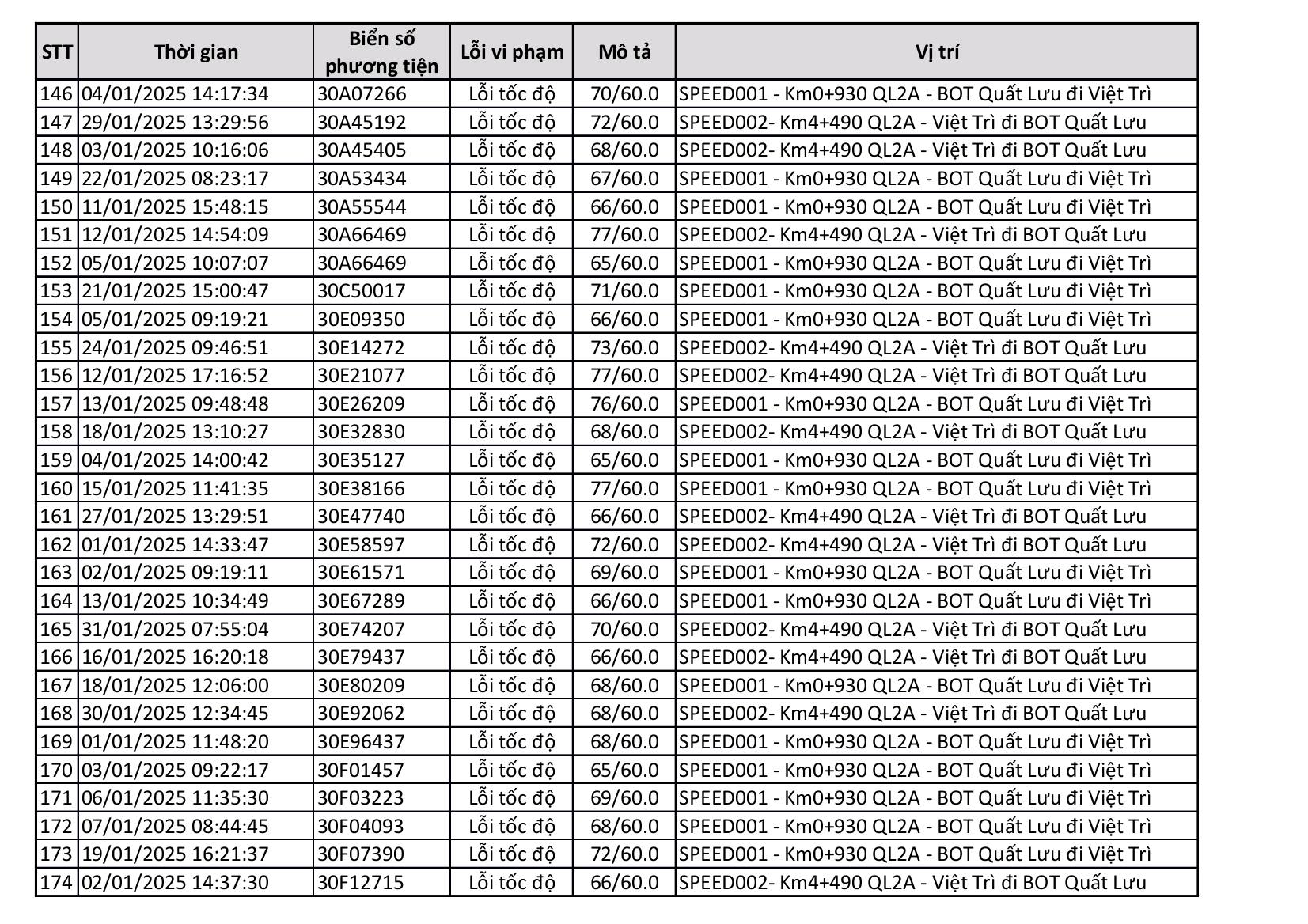 Cụ thể, trong tháng 1/2025, qua Hệ thống camera giám sát giao thông, Phòng Cảnh sát giao thông Công an tỉnh Vĩnh Phúc đã phát hiện và xử phạt “nguội” đối với 440 trường hợp vi phạm Luật an toàn giao thông (Lỗi tốc độ).