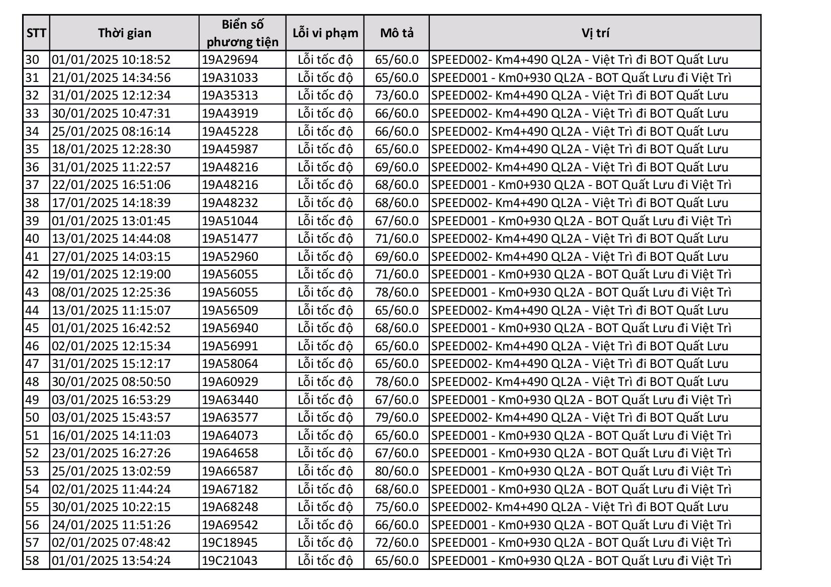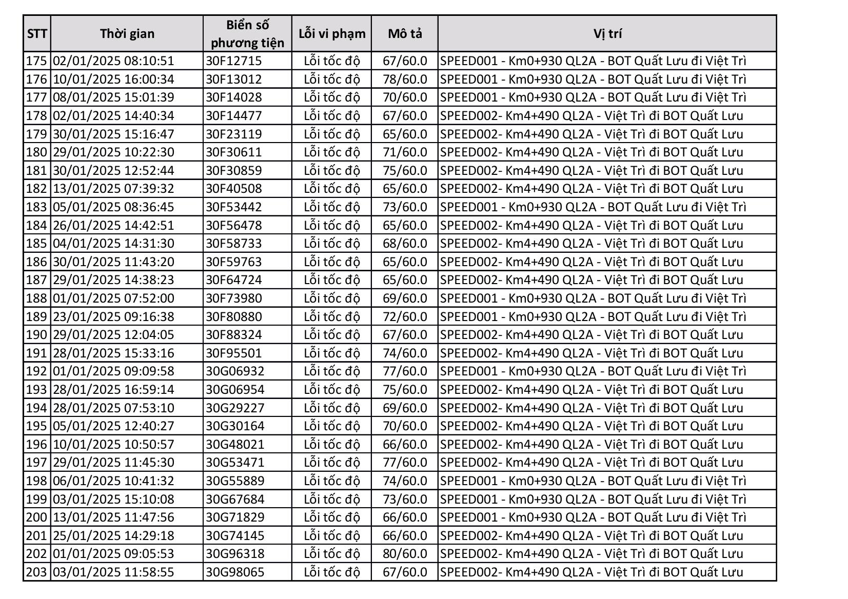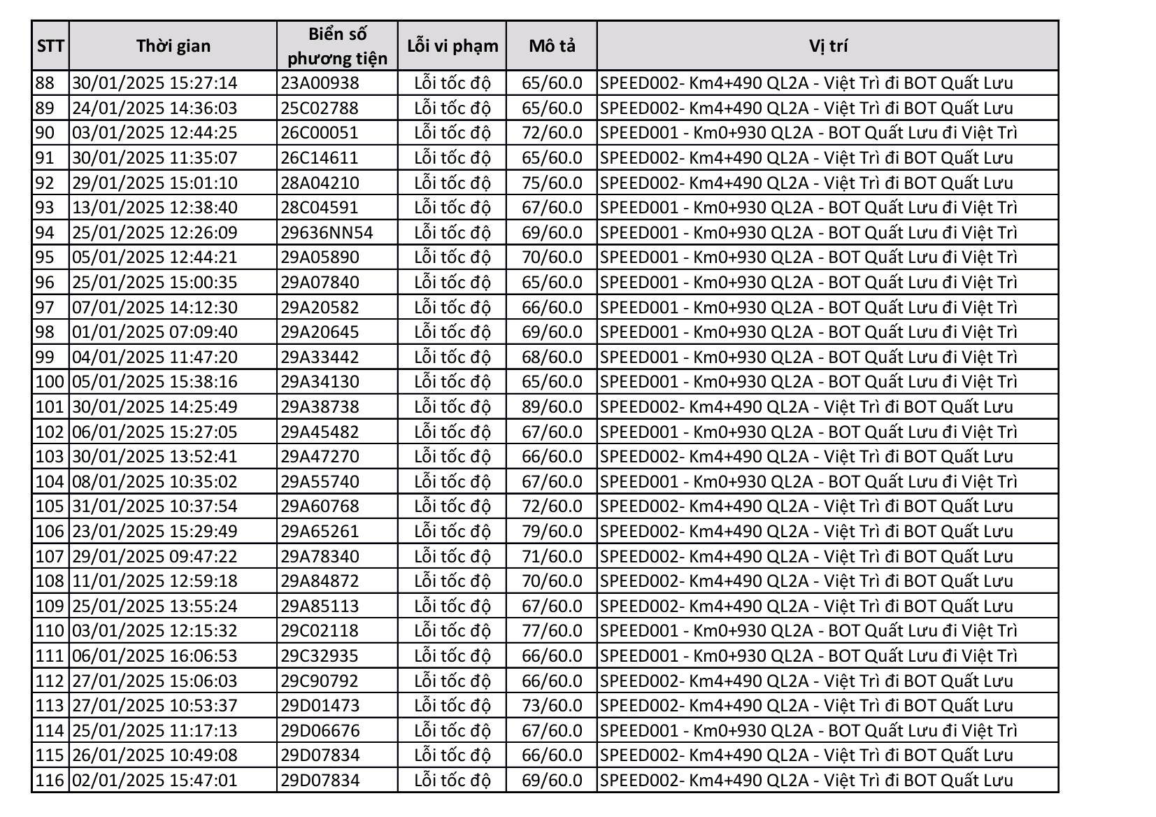 Lấn làn, vi phạm vạch kẻ đường: 30H-294.54; 30G-679.08; 30G-468.69; 28A-074.98; 30L-858.85; 98A-004.55; 98B-001.52; 98A-234.02; 20A-679.01; 29D-063.55; 98A-072.49;