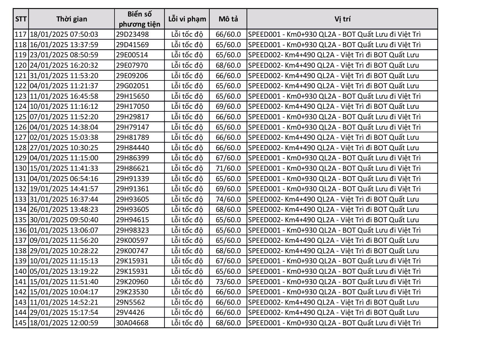 08/02/2025 16:37Công bố 440 trường hợp bị phạt 'nguội' trong tháng 1: Chủ xe có biển số sau phải nộp phạt theo Nghị định 168