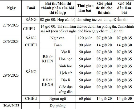 Theo hướng dẫn tổ chức Kỳ thi tốt nghiệp THPT năm 2023 của Bộ GD&ĐT, lịch thi các môn cụ thể như sau: