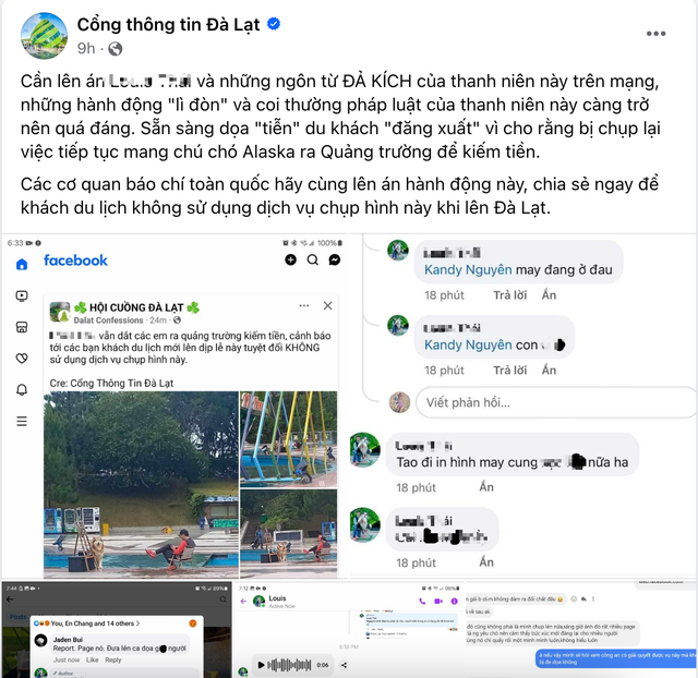 Thế nhưng vào ngày 31/8, khi bắt đầu bước vào kỳ nghỉ lễ 2/9 kéo dài 4 ngày, cộng đồng người dân và khách du lịch ở Đà Lạt bức xúc khi lại thấy một nam thanh niên hành nghề kinh doanh chụp ảnh thú cưng lại tiếp tục dắt chú chó Alasaka ra Quảng trường Lâm Viên. Khi bị chụp ảnh, thanh niên tên L.N thậm chí còn nhắn tin đe dọa người chụp.