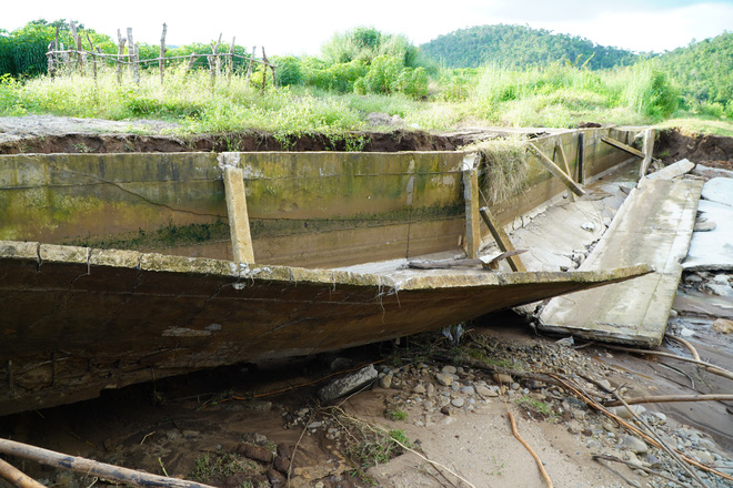 Có mặt tại hiện trường, chúng tôi ghi nhận tại hệ thống kênh dẫn có nhiều vị trí bị đổ sụp, đất đá vùi lấp. Tại vị trí kênh bị đổ sập, lộ ra những lớp bê tông có kết cấu khá rời rạc, thanh giằng chỉ có 1 cây thép nhỏ.