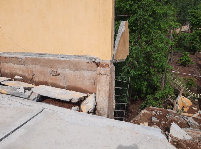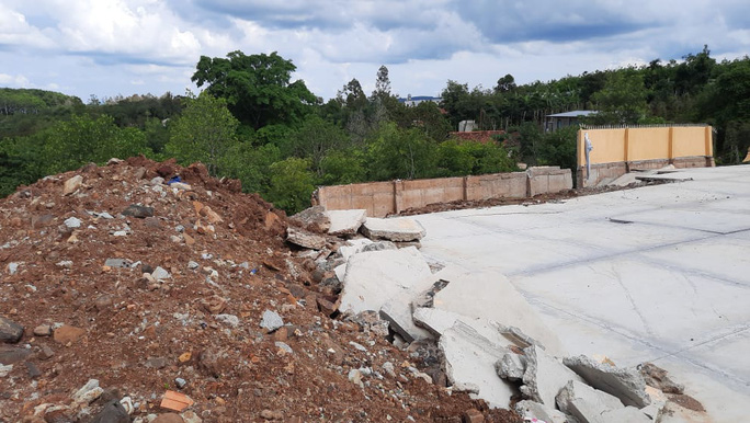 Theo quan sát, nền sân được đổ đất cao khoảng từ 3 đến 5m, sau đó đổ bê tông xi - măng lên trên. Xung quanh sân được bao bọc bởi kè chắn bê - tông, trên kè chắn được xây tường rào cao. Tại hiện trường, nhiều vị trí kè chắn bê - tông bị đổ sập và có hơn 70m tường rào bị gãy đổ. Một phần nền bê - tông sát kè chắn bị bể nát, nhiều m3 đất nền sụp lún.