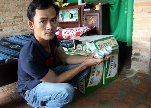 Hàng trăm lon bia bị lỗi phá tan tiệc cưới của chú rể trẻ. Ảnh. Tiến Hùng. |