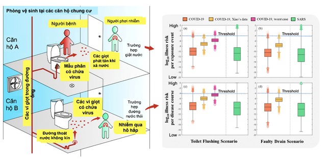 PGS.TS Trần Văn Hiếu nói thêm, trong một nghiên cứu theo phương pháp Ator, Winair kết hợp với mô hình mô phỏng với các thông số từ hai căn hộ Amoy Gardens (Hong Kong-Trung Quốc) cho thấy, virus SARS-CoV-2 có thể được phát tán theo cả chiều dọc và chiều ngang, thông qua các đường thông gió chung của toà nhà và dưới sự có mặt của lực nổi (hướng lên) và gió (hướng xuống).
