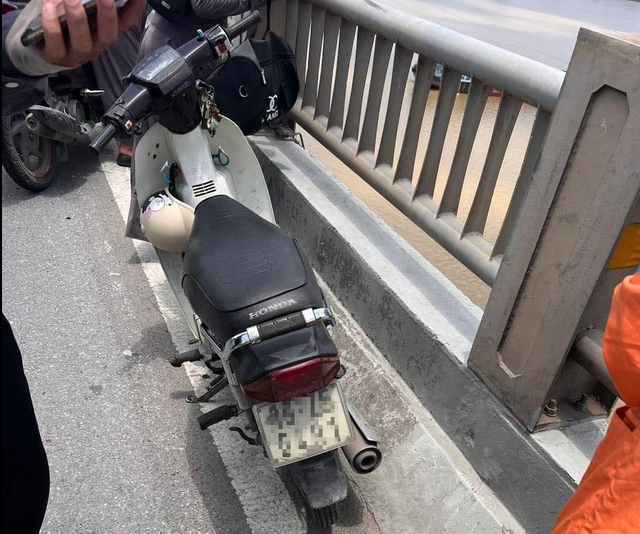 Khi xảy ra vụ việc, người dân phát hiện trên mặt cầu Vĩnh Tuy hướng từ quận Hai Bà Trưng sang quận Long Biên có để lại một chiếc xe máy biển kiểm soát 18Z5-64xx kèm theo chìa khoá vẫn còn nguyên trong ổ.