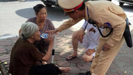 Sự việc xảy ra vào khoảng 16h30 ngày 3/7, Thượng úy Nguyễn Đức Sơn thuộc Đội CSGT số 3 (Công an TP Hà Nội) đang làm nhiệm vụ phân luồng giao thông trên đường Láng thì phát hiện một bà cụ khoảng 80 tuổi bị ngất xỉu dưới trời nắng. Anh đã nhanh chóng đưa bà cụ vào gốc cây nghỉ ngơi.