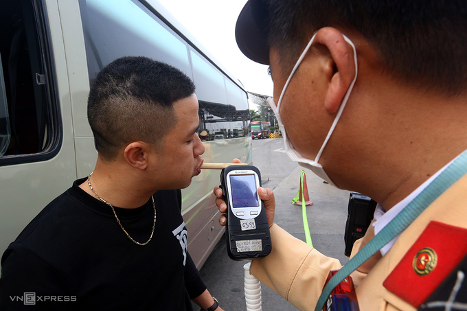 Từ chiều 22/12, tổ công tác thuộc Đội số 3 (Cục CSGT) do thiếu tá Trịnh Quang Khánh làm tổ trưởng, đã dừng hàng chục xe ôtô tại trạm thu phí trên cao tốc Pháp Vân - Cầu Giẽ, phát cho các tài xế ống thổi bằng tre một lần để kiểm tra nồng độ cồn.