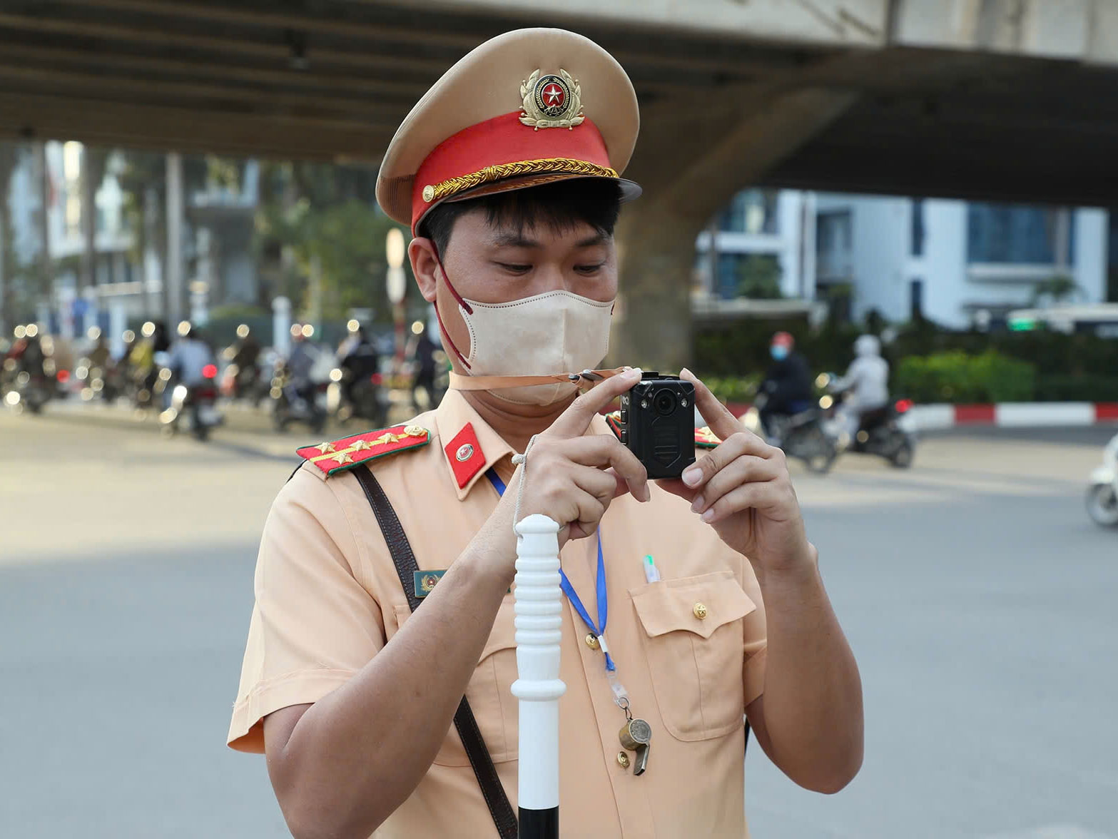 Trao đổi với báo Người Lao Động, Trung tá Phạm Văn Chiến, Đội trưởng Đội CSGT số 6, cho biết việc cảnh sát sử dụng camera lưu động nhằm xử lý triệt để các hành vi vi phạm như xe máy vượt đèn đỏ, đi ngược chiều, không đội mũ bảo hiểm... Các hành vi này thường xuất hiện khi vắng bóng CSGT.