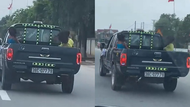 Trước đó, trên mạng xã hội xuất hiện một đoạn video ghi lại hình ảnh chiếc xe bán tải mang biển số 38C - 077.78 chạy theo hướng nam - bắc với tốc độ rất cao, chở 3 cháu nhỏ (2 gái, 1 trai) ngồi phía sau thùng.