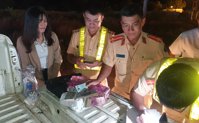 Đến khoảng 20h cùng ngày, tại Km 1946 xã Đắk Ru (huyện Đắk R’lấp, tỉnh Đắk Nông), lực lượng CSGT Công an tỉnh Đắk Nông đã phát hiện chiếc xe ô tô khách có đặc điểm giống như tin báo của chị Huyền nên ra hiệu lệnh dừng.