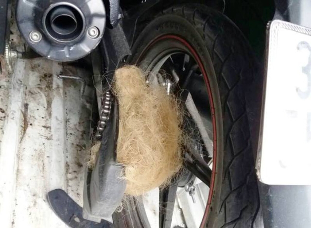 | Một chiếc xe máy bị dính lưới của CSGT |