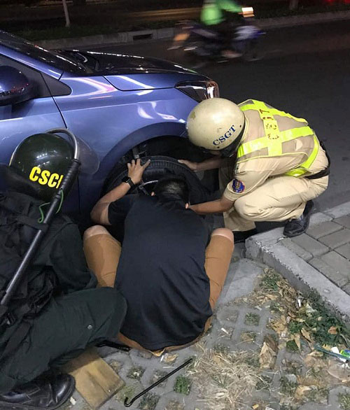 Cụ thể, khoảng 20h30 tối 4/1, các chiến sĩ CSGT đang tuần tra, kiểm soát trên đường Nguyễn Văn Linh hướng về KCX Tân Thuận. Khi đến giao lộ Nguyễn Văn Linh - Nguyễn Phan Chánh thì phát hiện một ô tô có biểu hiện lạc tay lái nên đã đến kiểm tra.