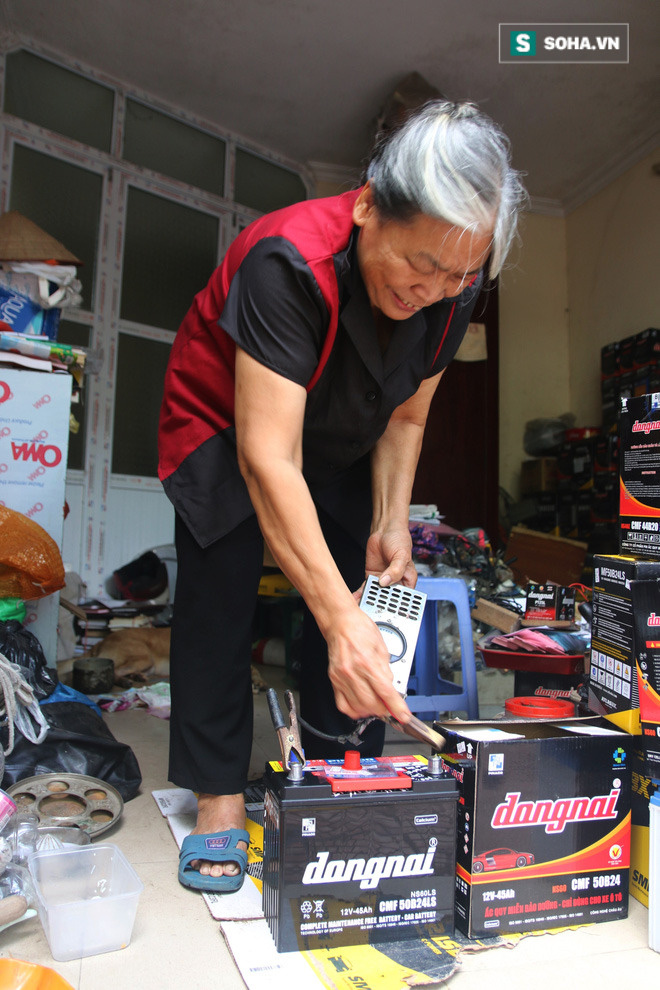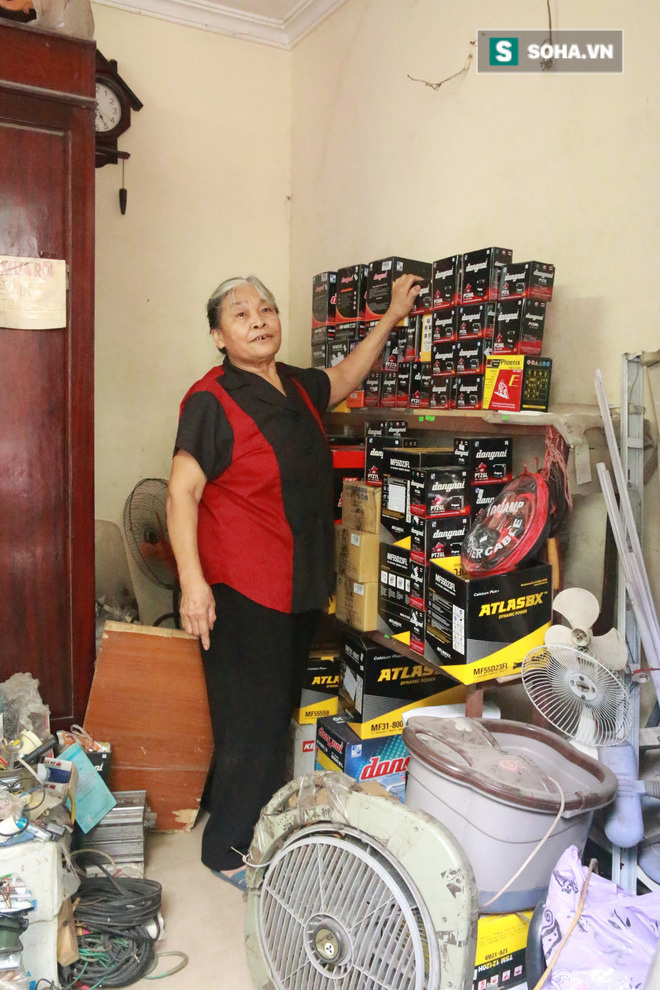 Bà là Nguyễn Thị Sâm, 72 tuổi, một người dân gốc Hà Nội. Đều đặn mỗi ngày, không trừ cuối tuần, bà mở cửa hàng từ 7h sáng đến 5h chiều. Người phụ nữ vừa là chủ vừa là thợ thay ắc quy duy nhất của cửa hàng. Khách đến với bà đa phần là người quen, không ít người gắn bó với bà từ khi cửa hàng mới mở.