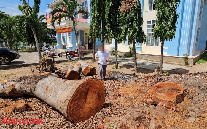 Theo ông Dũng, những cây gỗ trong khuôn viên cơ quan là những cây gỗ lớn, gốc bị nghiêng, lo ngại vào mùa mưa bão cây bị ngã đổ ảnh hưởng đến người, tài sản nên đã xin ý kiến từ trên xuống dưới và được đồng ý cho bán cây.