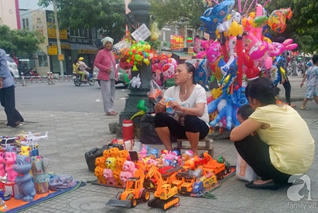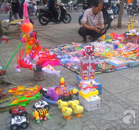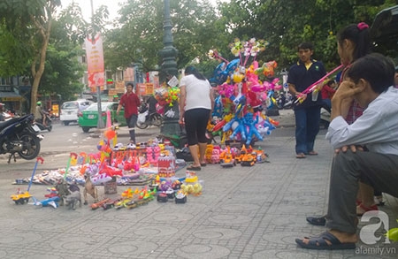 Trước cửa bệnh viện Nhi Đồng 2, có nhiều người bán hàng rong đồ chơi |