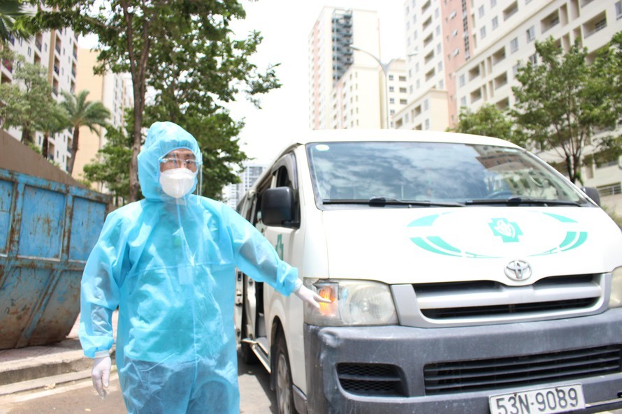 Tại nhiều bệnh viện tài xế xe cứu thương phải được yêu cầu ở lại bệnh viện trực 24/24. Một tài xế ở Bệnh viện Nhân dân 115, đang vận chuyển bệnh nhân mắc Covid-19 cho bệnh viện dã chiến Bình Chánh cho biết, ngày thường vận chuyển bệnh nhân cấp cứu đã căng thẳng, giai đoạn dịch Covid-19 vận chuyển bệnh nhân là F0 càng áp lực hơn.