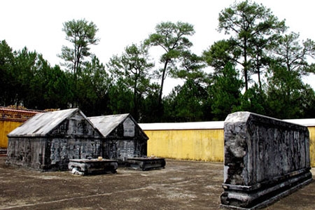 Mộ vua Gia Long và mộ Thừa Thiên Cao hoàng hậu được đặt song song nhau trong lăng Thiên Thọ. Ảnh: Đắc Đức. |