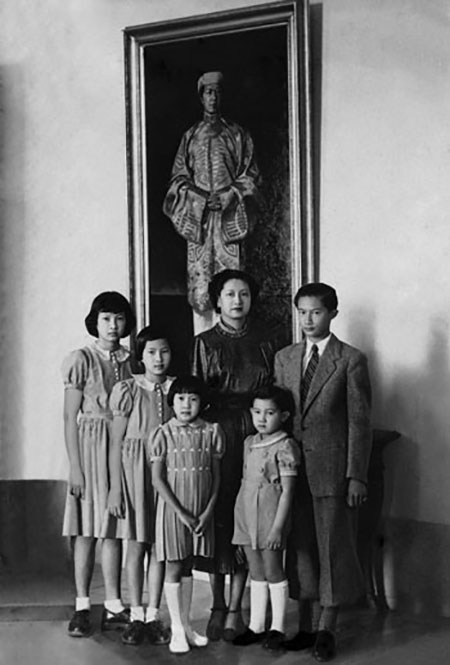 Hoàng hậu Nam Phương cùng các con, đằng sau là chân dung vua Bảo Đại. Ảnh tư liệu. |