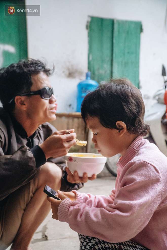 Cho con gái ăn xong bữa sáng, anh Hùng cặm cụi nhỏ thuốc mắt, rồi đeo cặp kính đen. Trước đây, cả 2 mắt bị đục thủy tinh thể nên nhìn kém, chẳng ai dám nhận anh làm thuê làm mướn. Được mạnh thường quân hỗ trợ, đầu tháng 1/2021, anh vừa được mổ mắt phải, thị lực dần ổn định. Sắp tới, anh sẽ tiếp tục được tài trợ mổ mắt còn lại.