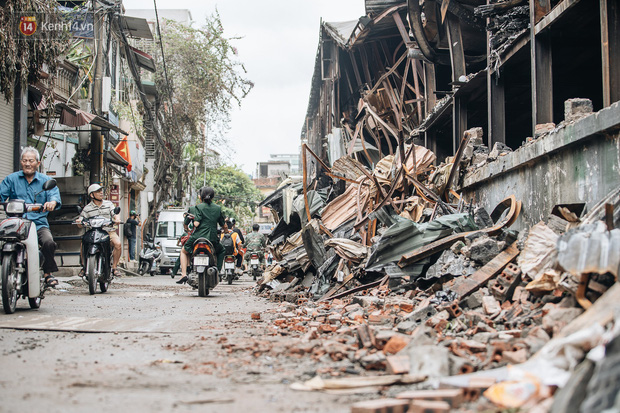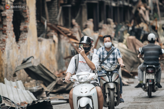 Theo ghi nhận của chúng tôi vào sáng 30/8, mọi sinh hoạt của người dân tại ngã 3 cạnh nhà kho bị cháy của công ty Rạng Đông vẫn diễn ra bình thường. Ở mặt đối diện bức tường bị đục, các hộ dân đều đóng kín cửa, mùi khét lẹt vẫn bao phủ xung quanh khu vực. Hầu như người dân sinh sống quanh đây đều trang bị khẩu trang, nhưng không đảm bảo về mặt chất lượng.