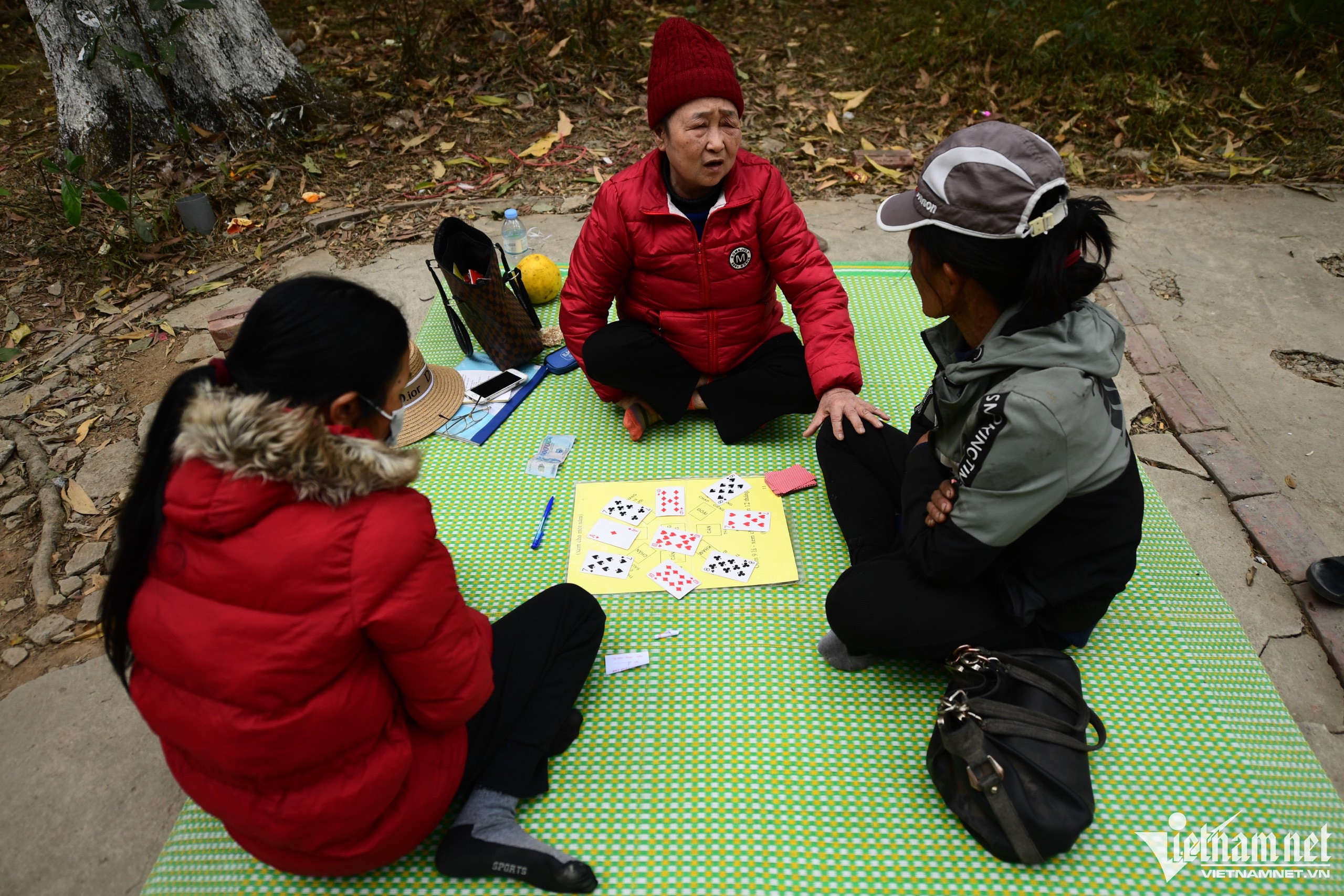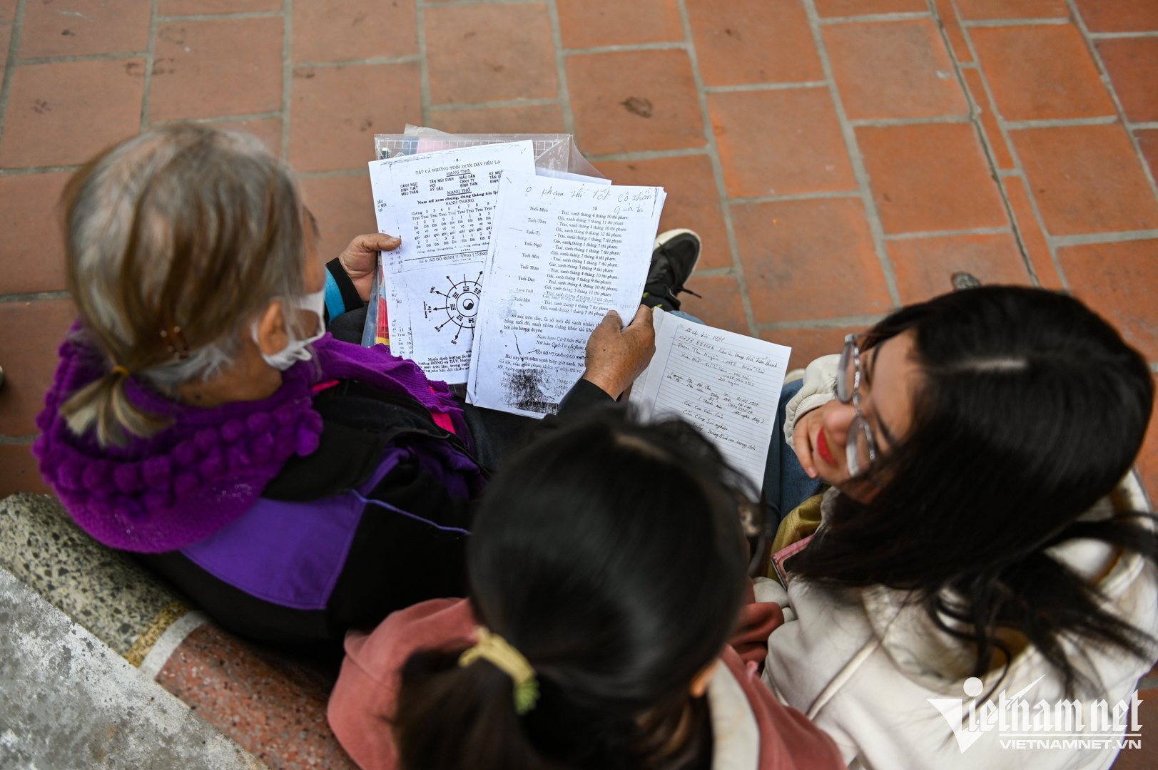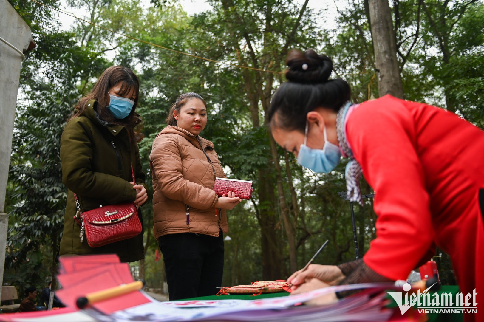 Ngay gần đó, dịch vụ cho chữ cũng hút khách. Hai phụ nữ đến từ Sóc Sơn cho biết, chỉ xin chữ "bình an" cho gia đình chứ không xin quẻ hay bói toán đầu năm. Họ chia sẻ: "Đầu năm tôi đi nhiều đền, chùa, hầu hết là cầu sức khỏe, bình an chứ không ham mê bói toán. Tôi không muốn những điều đó làm phân tâm bản thân".