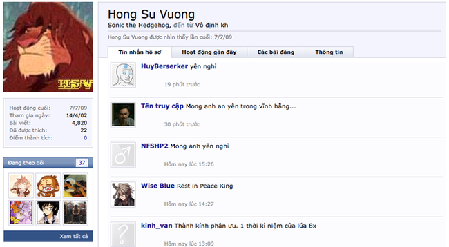 "Sau nhiều ngày chiến đấu với SARS-CoV-2 bất thành, cựu admin Hong Su Vuong, tên T.H.L. đã qua đời vào chiều ngày 27 tháng 7 năm 2021 tại Thành phố Hồ Chí Minh. Tang lễ được cử hành vào ngày 28 tháng 7 năm 2021 tại tư gia.