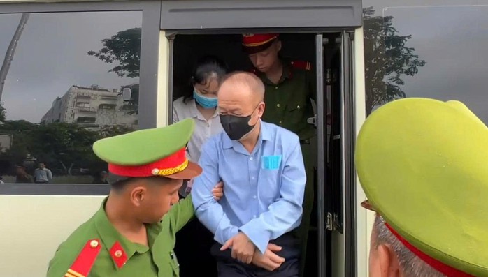 | Các bị cáo được dẫn giải đến tòa trên xe đặc chủng và xe 29 chỗ. Video: Nguyễn Hưởng |