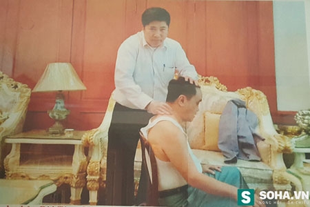 Cũng trên tường ấy, ở vị trí trang trọng, có treo tấm hình ông Mậu đang xoa bóp, trị bệnh cho một quan chức của chính phủ Lào.