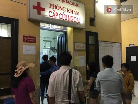 Bên ngoài phòng cấp cứu tại bệnh viện Việt Đức đang có rất đông người nhà nạn nhân đứng chờ. Ảnh: Định Nguyễn. |