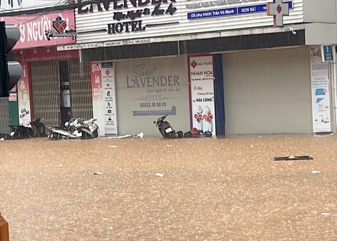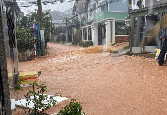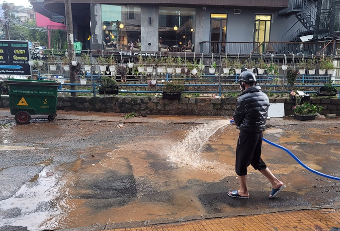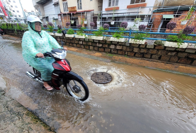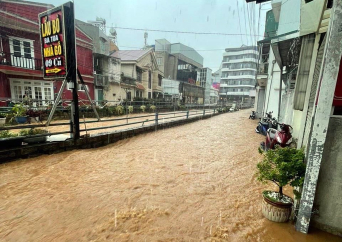 Đầu giờ chiều 12-7, TP Đà Lạt có mưa lớn gây ngập úng cục bộ nhiều tuyến đường, nhiều xe chết máy.
