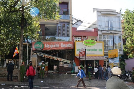 Vụ nổ còn làm hư hỏng tầng trệt của quán ăn Hiền Ty và khiến nhiều nhà bên cạnh bị ảnh hưởng.