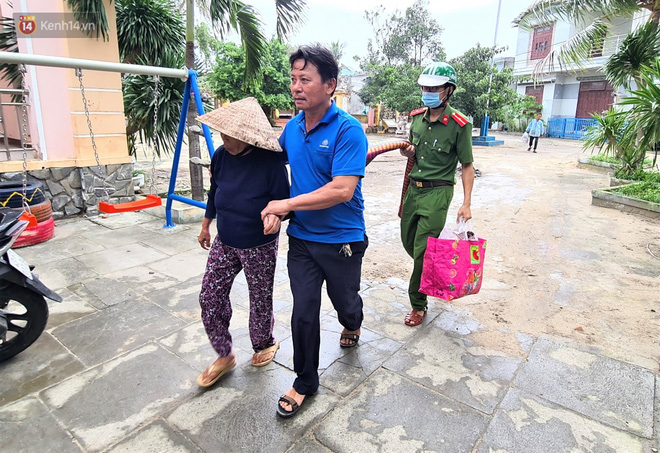 Theo ghi nhận của PV, sáng 14/11, tại khu dân cư Tân Trà (phường Hòa Hải, quận Ngũ Hành Sơn) nơi có hàng chục nhà cấp 4 của người dân không kiên cố, chính quyền địa phương, quân đội, công an đã đến từng hộ dân hỗ trợ di dời người dân di dời đến nơi an toàn.