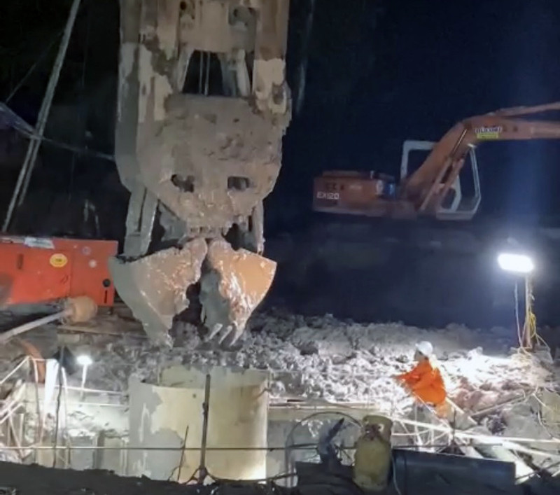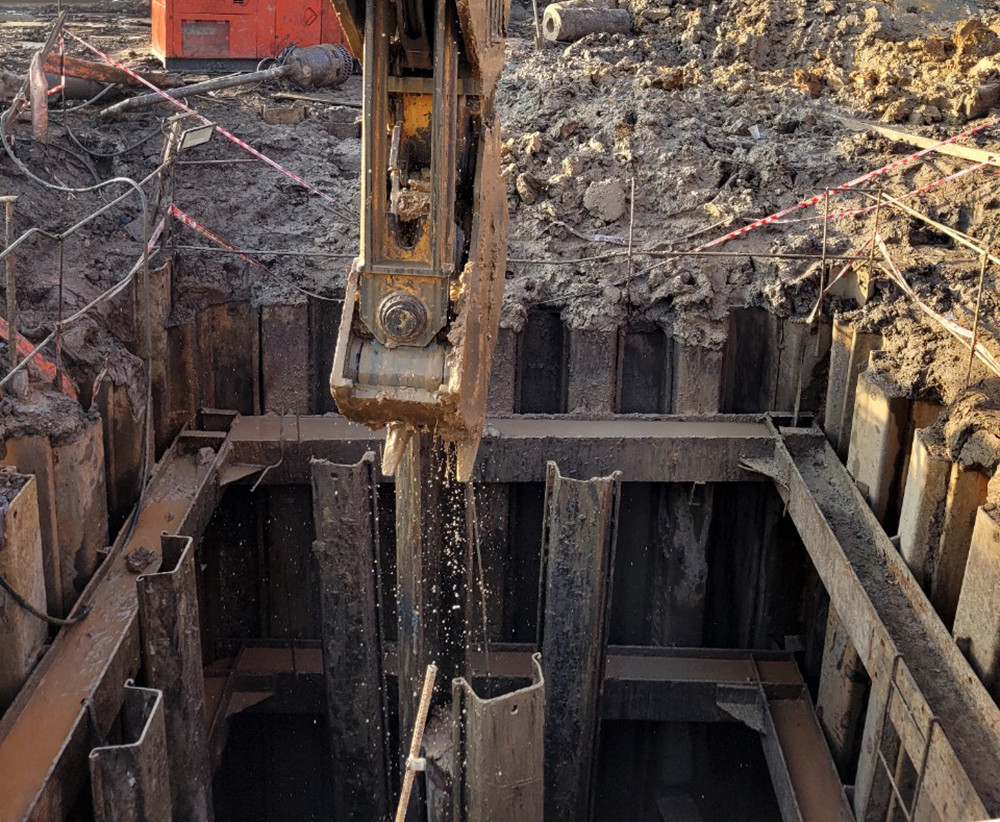 Trong đêm, lực lượng cứu hộ đã đào đất trong lòng hố kết hợp với bơm dung dịch bentonite (loại sét khoáng có tính trương nở và độ nhớt cao) phía dưới khung vây ván thép.