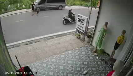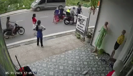 Cùng lúc, một phụ nữ điều khiển xe máy đi tới, do gặp sự cố bất ngờ nên người phụ nữ tông trúng bé trai. Cú va chạm khiến cả hai ngã xuống đường.