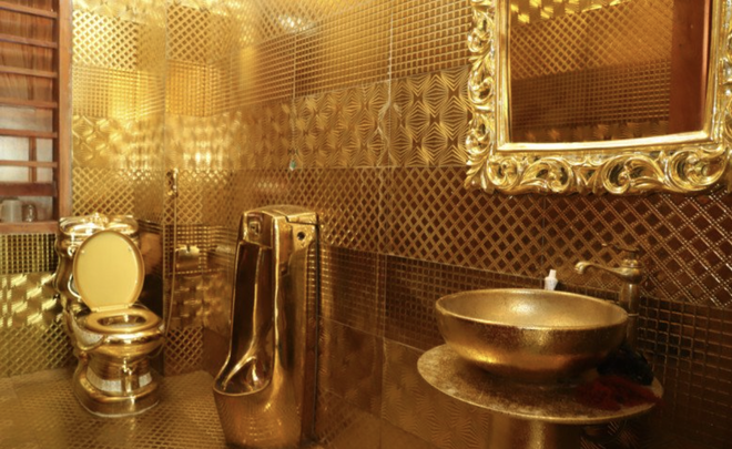 Ngoài ra, phần đồ gỗ trong lâu đài cũng khá đắt đỏ. Nội thất có nhiều món là hàng nhập khẩu, được dát vàng 24k và vàng công nghiệp. Lâu đài của “đại gia đồng nát” có tổng cộng 10 phòng ngủ, thoải mái cho gia đình sinh sống. Ngoài vợ chồng anh cùng 4 người con, anh Thoan dự định sẽ đón thêm cả bố mẹ ruột và bố mẹ vợ về sống cùng để tiện chăm sóc cho ông bà.