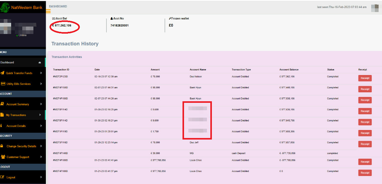 Tạo ra hẳn một trang web ngân hàng giả mạo với giao diện khá giống với các ngân hàng thật. Trong đó có lịch sử giao dịch, có số dư lớn để “con mồi” tin tưởng. Đây là chiêu đánh vào lòng tham sẵn có trong mỗi người.
