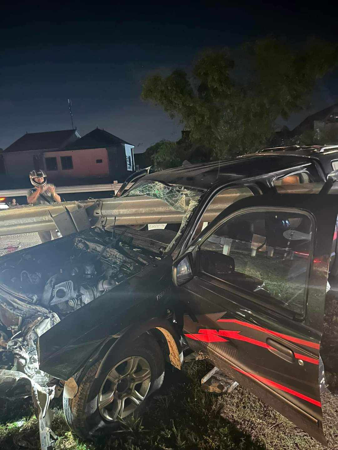 Hậu quả, dải tôn hộ lan xuyên thủng ô tô từ kính chắn phía trước sang kính phía sau bên lái; tài xế bị thương, được người dân và lực lượng chức năng đưa đi cấp cứu tại bệnh viện.