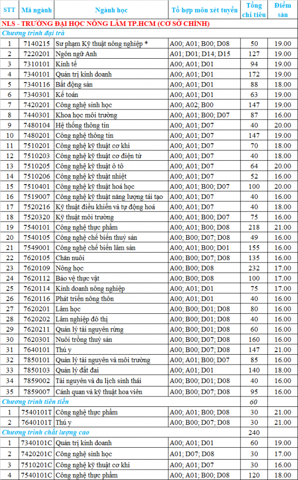 Riêng đối với ngành sư phạm kỹ thuật nông nghiệp, ngoài điều kiện điểm sàn, phải thỏa điều kiện đảm bảo chất lượng đầu vào theo quy chế tuyển sinh hiện hành của Bộ GD&ĐT.