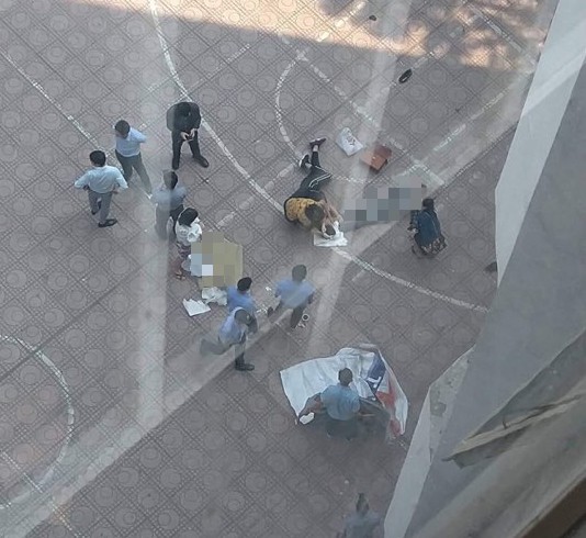 Một sinh viên chứng kiến sự việc cho hay, vào thời điểm trên nhiều sinh viên nghe thấy tiếng động mạnh phát ra dưới sân. Khi chạy lại thấy một người đã tử vong, người còn lại bị thương nặng.