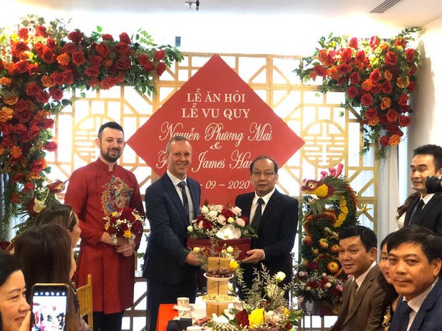 Trước câu chuyện đó, Đại sứ Vương quốc Anh tại Việt Nam, ông Gareth Ward, đã hào hứng đứng ra làm chủ hôn. Trên trang cá nhân của mình, ông Gareth Ward chia sẻ: "Đây là lần đầu tiên tôi tham dự lễ ăn hỏi Việt Nam và càng vinh dự hơn khi mang tư cách là đại diện của chú rể".
