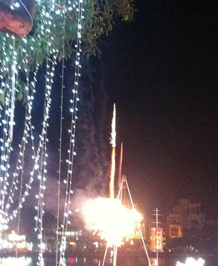 Hình ảnh được cho là bắn pháo hoa tại đám cưới con gái đại gia Cà Mau. Ảnh: Nhật Tân. |