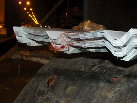 Vết tích còn dính lại trên chồng tôn thép |
